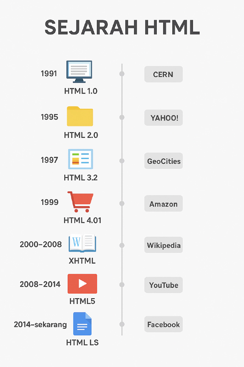 Sejarah HTML adalah sejarah evolusi web itu sendiri. Dari laboratorium CERN hingga aplikasi desain kolaboratif di browser, HTML telah melalui perjalanan panjang. Setiap fase membawa inovasi teknis sekaligus transformasi sosial.