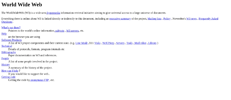Dengan dorongan latar belakang tersebut, Berners-Lee menciptakan HTML (HyperText Markup Language) untuk meminimalisir perbedaan sistem komputer dan format. HTML dirancang sebagai bahasa markup sederhana yang memungkinkan dokumen teks memiliki tautan (hyperlink) ke dokumen lain. Bersamaan dengan itu, Lee juga mengembangkan HTTP (HyperText Transfer Protocol) dan WorldWideWeb, sebuah browser sederhana sekaligus editor HTML pertama. Pada 1991, Lee meluncurkan situs web pertama yang beralamat di http://info.cern.ch/. Situs tersebut berisi dokumentasi proyek World Wide Web serta instruksi penggunaan.