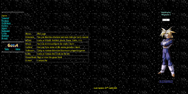 - GIF animasi, marquee, dan musik latar.